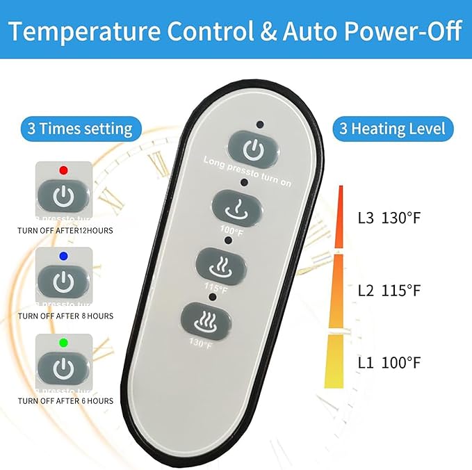 - [Adjustable Temperature & Timer Control]: Customize your pet’s warmth with three heat settings (ranging from 38°C/100°F to 55°C/131°F) and three automatic shut-off timer options (4H/8H/12H). The energy-efficient design prevents overheating and ensures a cozy yet safe environment for your pet.