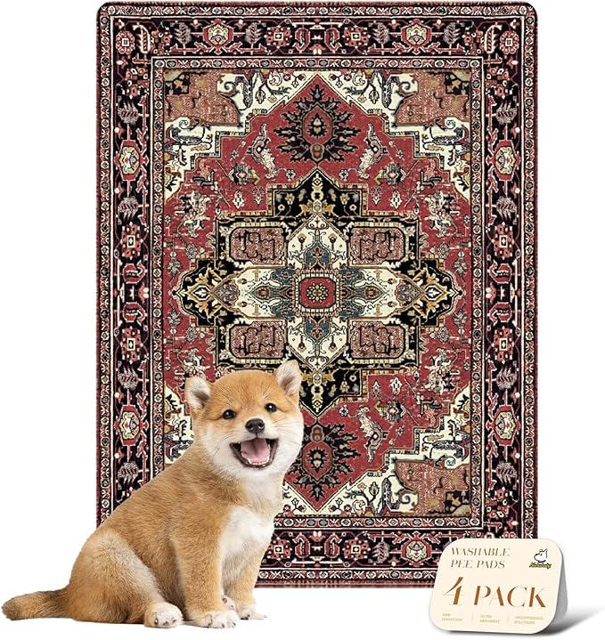 nunubaby 4PACK Washable Pee Pads for Dogs, Stylish, Non-Slip and Leak-Proof Pee Pads. Reusable Potty Pads for Dogs for Crates and Floors.(Red/Rect, 18" x24" )