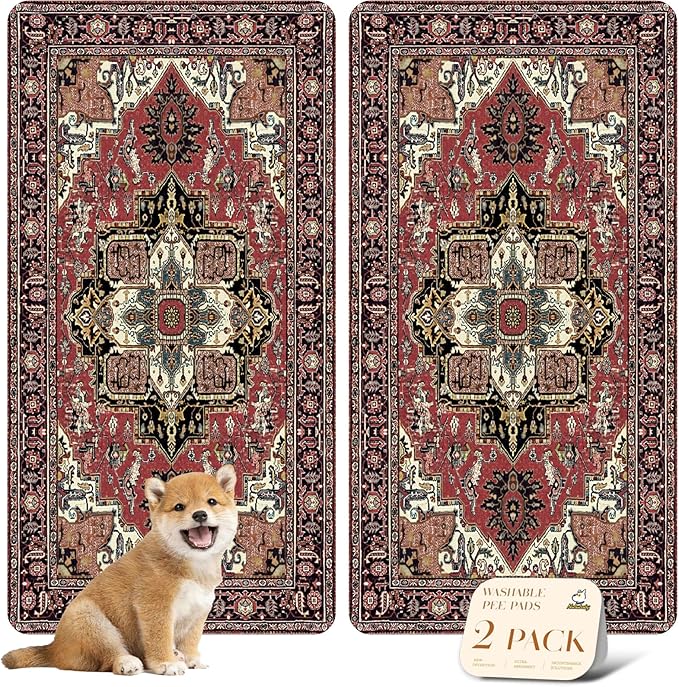 nunubaby Washable Pee Pads for Dogs, Stylish, Non-Slip and Leak-Proof Pee Pads. Reusable Potty Pads for Dogs for Crates and Floors.(Red/Rect, 24" x48" )
