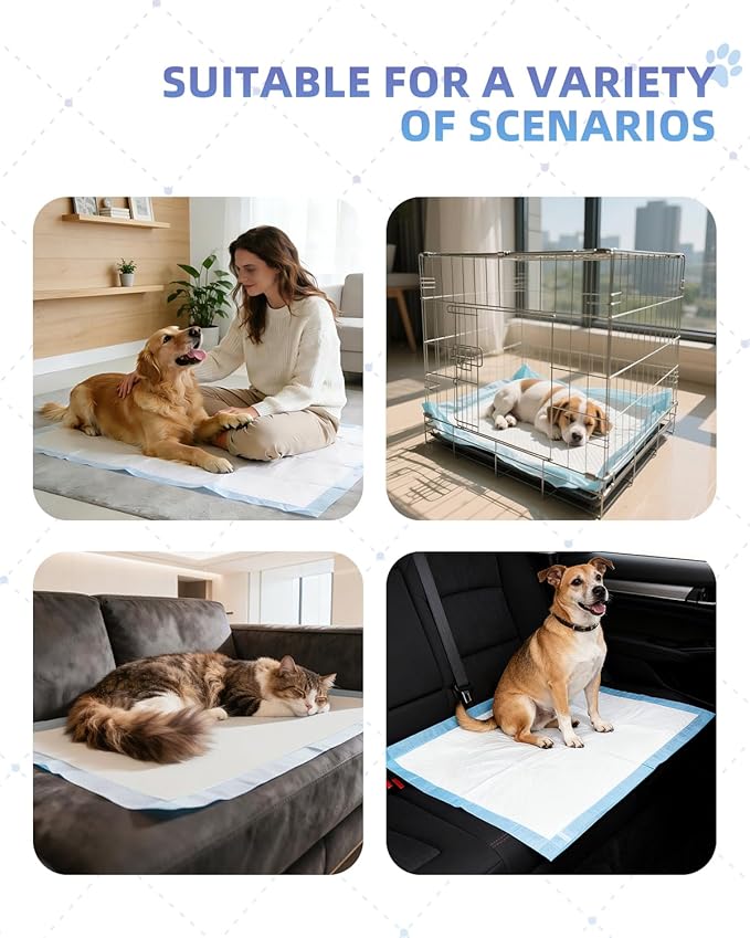 - 【Large Size & Multiple Purpose】 Measuring 30" x 36", our pee pads cater to all pets such as dogs, cats, rabbits, etc. Our pads serve multiple purposes, from potty training to elderly pet care and travel companionship. It's suitable for indoor or outdoor activities.