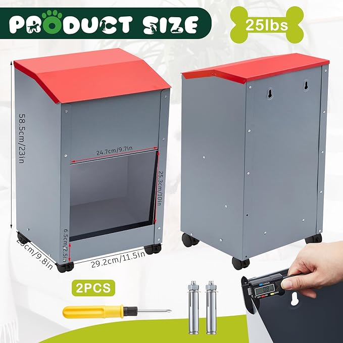 - Two Installation Methods: the large automatic dog food dispenser offers two convenient installation methods; The container on the back has two installation holes; You can use the included screws to install it on the wall or directly on the floor; Both sides have handles; Whether installed on the wall or on the floor, this feeder can meet your preferences
