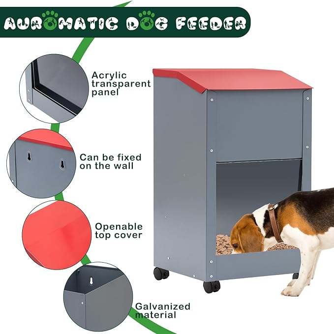 - Easy to use: The galvanized gravity feeder is equipped with screws and installation instructions. It can be easily installed according to the instructions. The top cover can be easily opened, which is convenient for adding feed and preventing the food from getting wet by rain. Note: Our acrylic plate is covered with a layer of paper film. When using, please tear off the paper film to be able to see the dog's eating situation