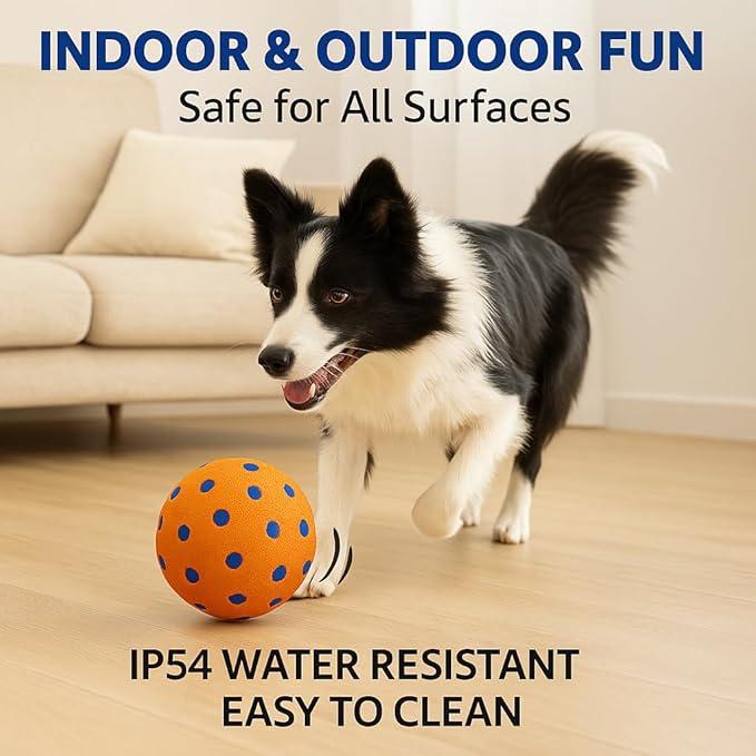 - Water-Resistant, Easy to Clean & Customer Support – With IP54 water resistance, this interactive dog ball is safe for hardwood floors, carpets, and even outdoor grass. Simply wipe or rinse after play to keep it fresh. Every purchase is backed by reliable support—if your dog ball toy has any issue, contact us for a worry-free replacement.