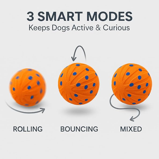- Multi-Mode Smart Interactive Dog Ball – Built with smart sensors, this interactive dog toy automatically switches between rolling, bouncing, and mixed modes, keeping dogs curious and active. The automatic dog toy reactivates with a simple touch from your pup—no need for constant resets. Tip: Choose the right mode for your dog’s size to prevent excessive impact or damage.
