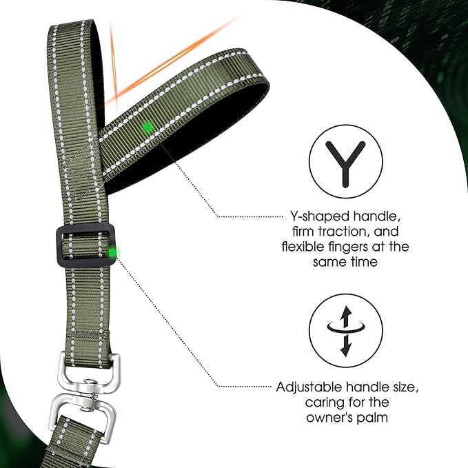 - Hands-free Grip Design: Our dog leash features a Y-shaped handle design. Extremely secure, no need to pull excessively, won't come loose. It functions as a standard, comfortable soft grip and transforms into a hands-free handle. Wear it on your wrist to free your fingers for using your phone or reading the newspaper. Even in winter with gloves on, you can adjust the handle size to prevent slipping. We believe this will revolutionize how you walk your dog. Try it today!
