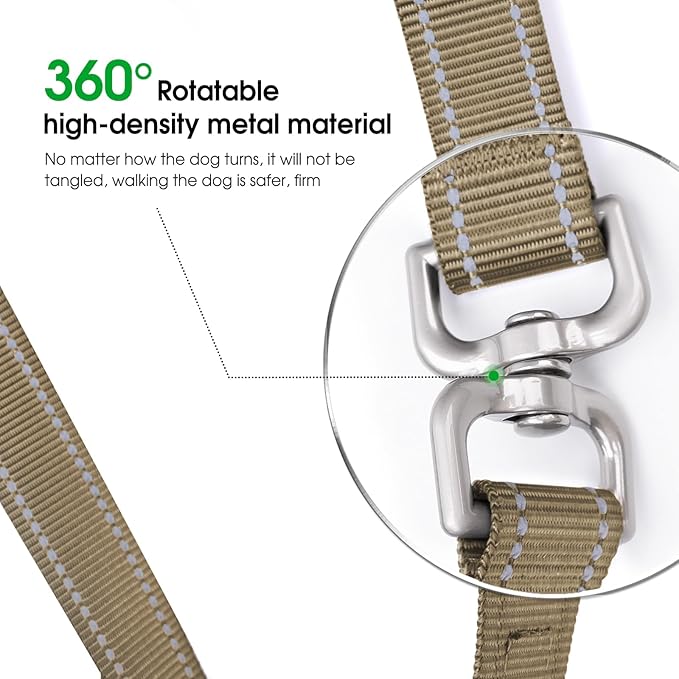 Hands-Free Dog Leash, Heavy Duty No-Pull Training Lead w/Anti-Tangle, Double Padded Traffic Handles Adjustable 5-5.6FT & Reflective Thread for Medium Large Dogs for Running/Walking Khaki
