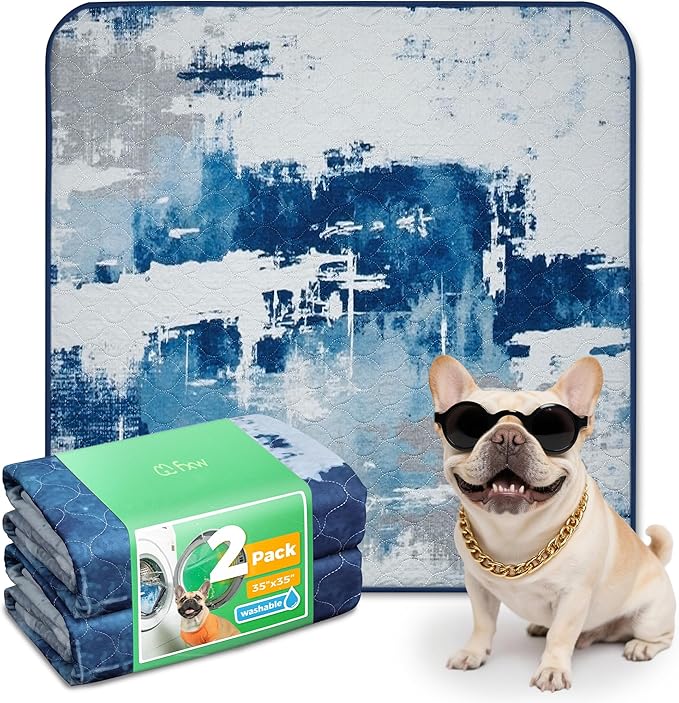 FXW Washable Pee Pads for Dogs, Puppy Pads with Super Absorbent, Specifically Designed for Potty Training, 35" Square, Tie-Dye Blue, 2 Packs
