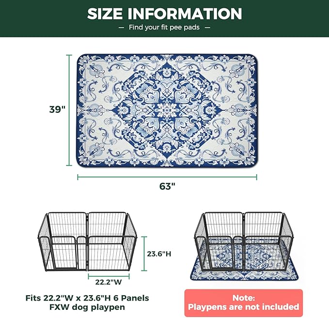 - Perfect Fit for FXW Dog Playpens & Crates: Our Dog Pee Pads are specially designed to fit FXW dog playpens in all shapes — square, rectangle, hexagon, octagon, and more. These versatile dog training pads and reusable puppy pads also work perfectly as crate pads, giving you flexible options for playpens, crates, and training areas.