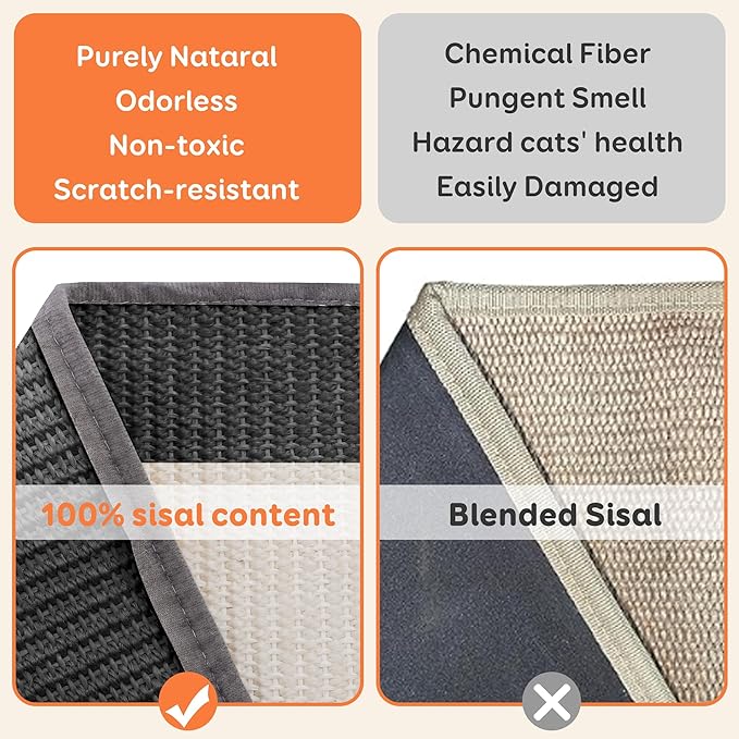 - Extra-Larger & Durable & Comfortable & Protect Furniture: Upgraded wider and longer sisal pad design, perfect for big cats or multiple cats. Satisfies natural scratching instincts while keeping your furniture safe.