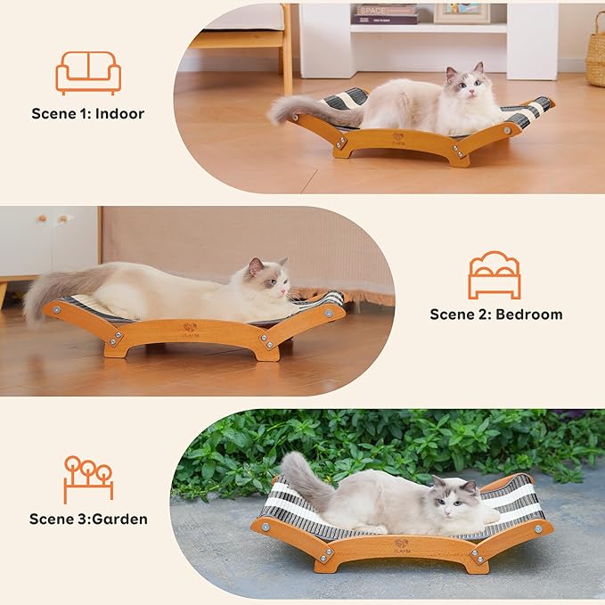 - Durable & Sturdy Cat Scratch Pad with Hammock for Indoor Cats Lounger & Sleep & Scratch: Functions as a relaxing hammock and a durable scratching surface. After playtime, cats can curl up on the sturdy surface for a comfortable nap.