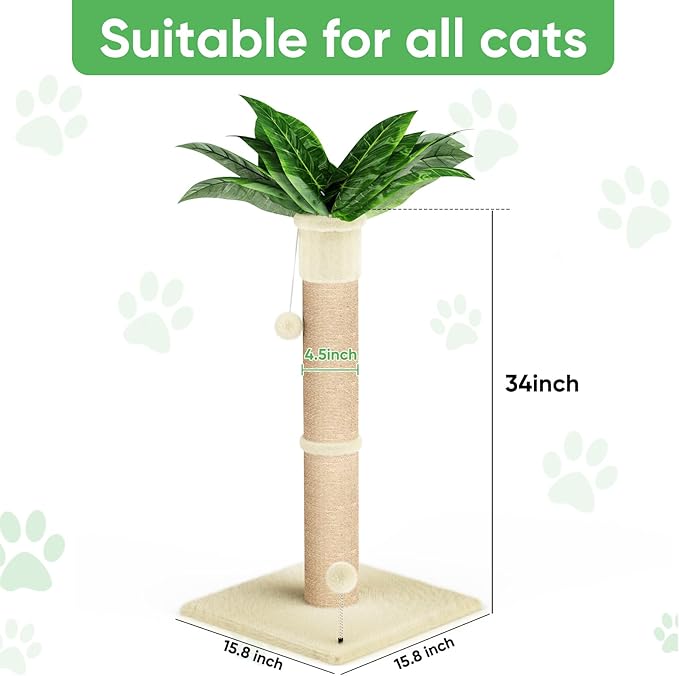 - 【PERFECT HEIGHT & 2 SIZE OPTIONS】 XiaZ scratching post standing at a full 34 inches tall, it perfectly satisfies your cat's natural instinct to stretch and scratch vertically. We offer two sisal post diameters: a 2.8in post (6lbs) ideal for small to medium cats and a sturdy 4.5in post (9.4lbs) suitable for small, medium, and large cats, ensuring a comfortable scratching angle for every feline.