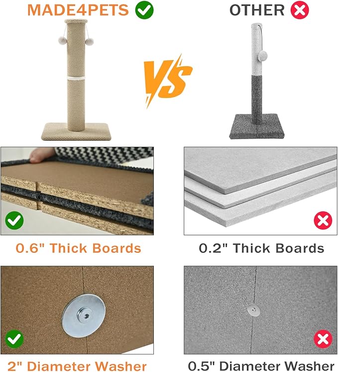 - Easy & Quick Assembly: This scratching post comes with easy-to-follow instructions and all the necessary tools to assemble it in just minutes. Start providing your cat with a safe and fun scratching spot right away, a high quality scratching posts for indoor cats both adults and kittens.