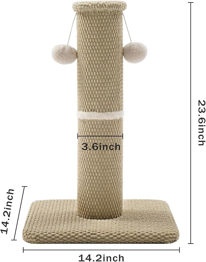 Made4Pets Tall Cat Scratching Post, 23.6" Modern Cat Scratcher with Hanging Balls, Heavy Duty and Thicker Scratching Post for Indoor Cats Adults, Sturdy Base Cat Scratch Post, Beige