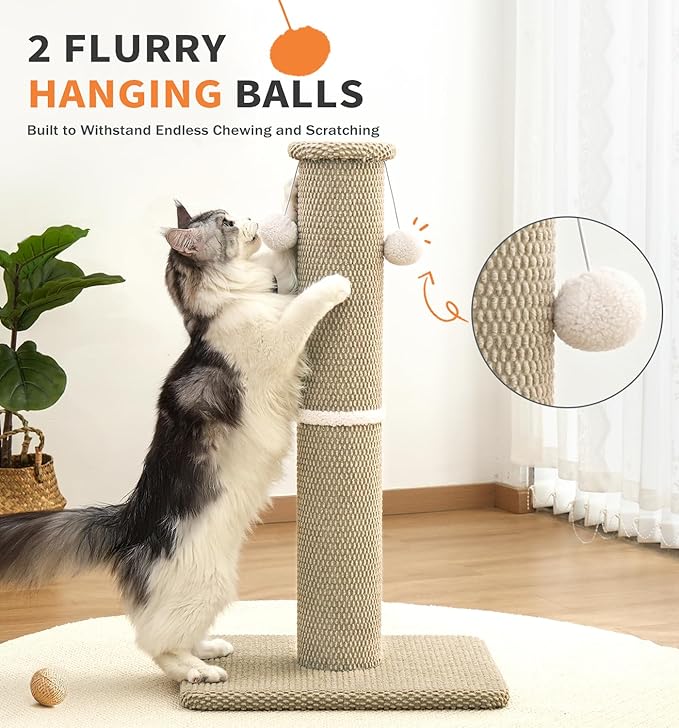 - Engaging Interactive Hanging Balls: The top of the scratching post features replaceable balls, providing your cat with an additional source of entertainment. The interactive cat toys keep your cat active and engaged, encouraging consistent use of the post for both scratching and play.