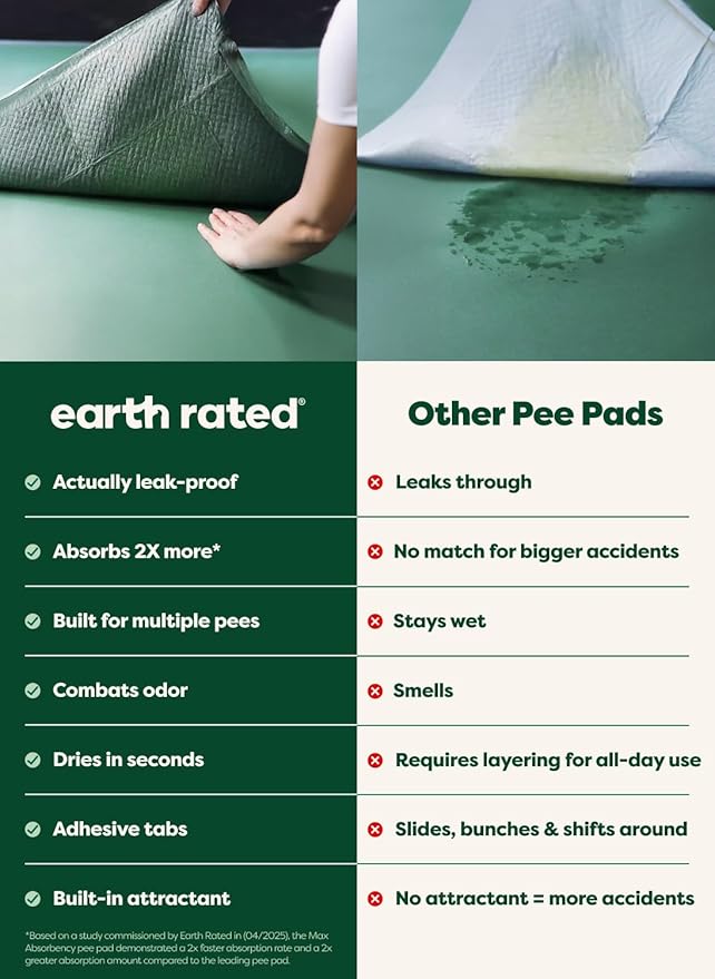- *Based on a study commissioned by Earth Rated in April 2025, compared to the leading pee pad