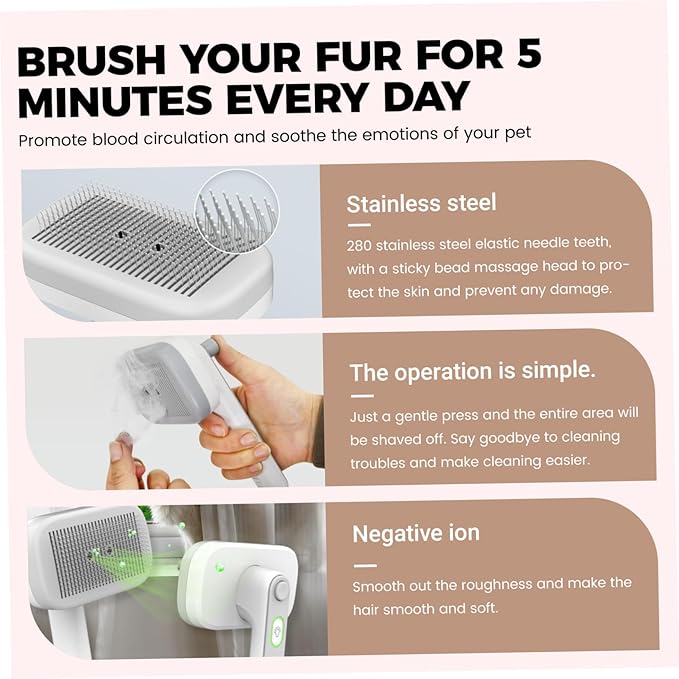 - Anti-Static & Smooth Finish: With an integrated ion generator, this brush neutralizes static electricity, reduces frizz, and leaves your pet's coat looking smooth, shiny, and neatly groomed.