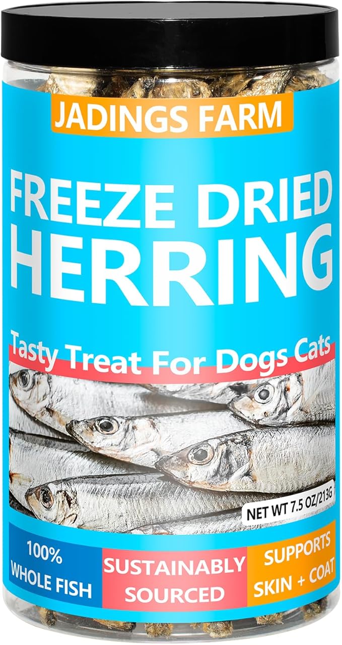 Herring Fish Dog Treats, Freeze Dried, Wild-Caught, Single Ingredient, High-Protein, Omega 3 & 6 for Skin & Coat, No Additives, Grain-Free Cat & Dog Treats (7.5 oz)