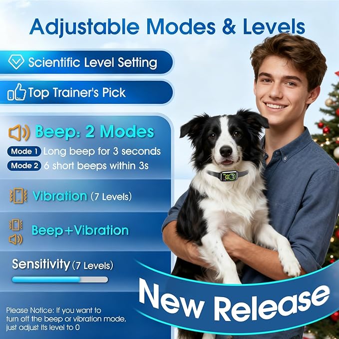 - ππππππ & πππ π β πππππππππππ ππππππππππ πππππ-ππ! Training should never hurt. This no bark collar for dogs uses gentle Beep (2 levels), Vibration (7 levels), Beep + Vibration Mode, ensuring a humane and stress-free experience for your pet. Especially suited as a barking collar for for sensitive, timid, senior, or younger pups. For extra safety, it features an Auto-Sleep Mode: after 5 consecutive activations, the bark collar for dogs pauses for 1 full minute, giving your dog time to relax and preventing over-correction. A smarter, safer path to a peaceful home