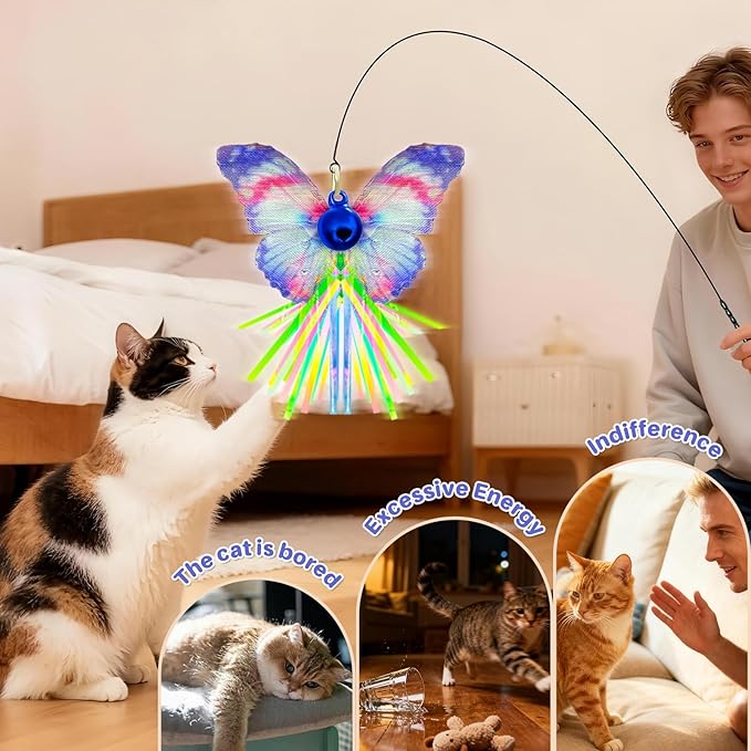 - ENGAGING BUTTERFLY TEASER WAND Designed for natural hunting instincts, this cat wand with a fluttering butterfly teaser toy delivers exciting interactive play and keeps your cat entertained longer.