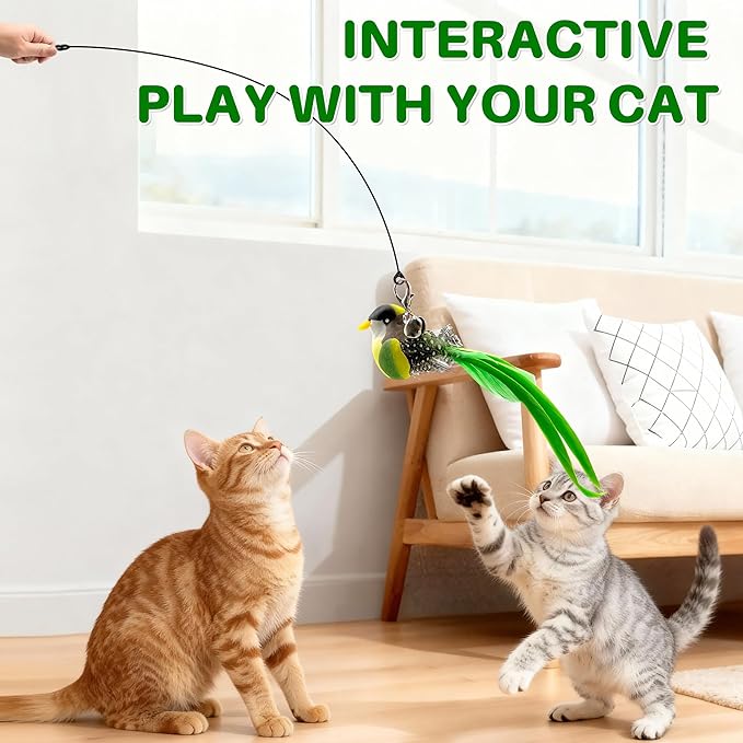 - REALISTIC BIRD PENDANT FOR MAXIMUM ENGAGEMENT Each wand is equipped with a lifelike bird ornament that mimics natural bird movements, captivating your cat’s attention. The realistic design stimulates your cat’s predatory instincts, making it the ideal toy for hours of fun and exercise. Keep your cat entertained while satisfying their hunting drive.