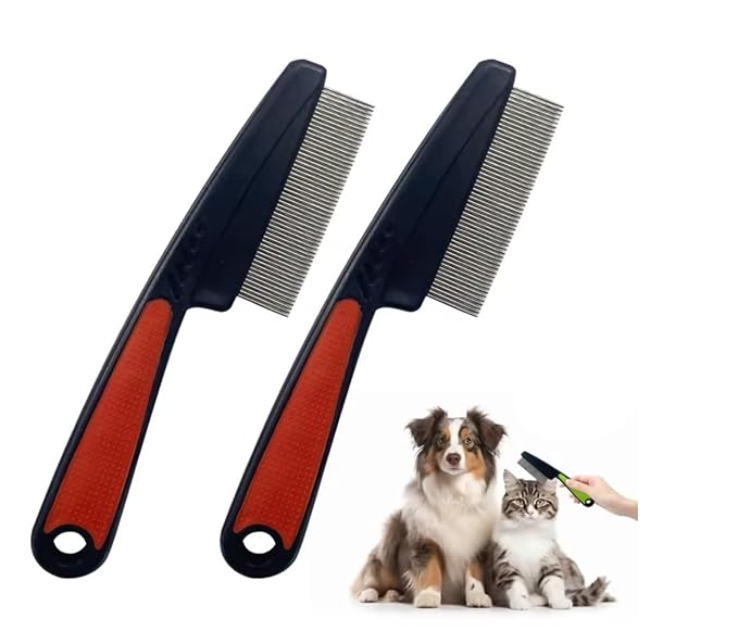2-Pack Upgrade Fine Tooth Flea Comb for Dogs & Cats, Stainless Steel Pet Hair Removal and Massage Brush - Multifunctional Cleaning Comb for Pets(Red)