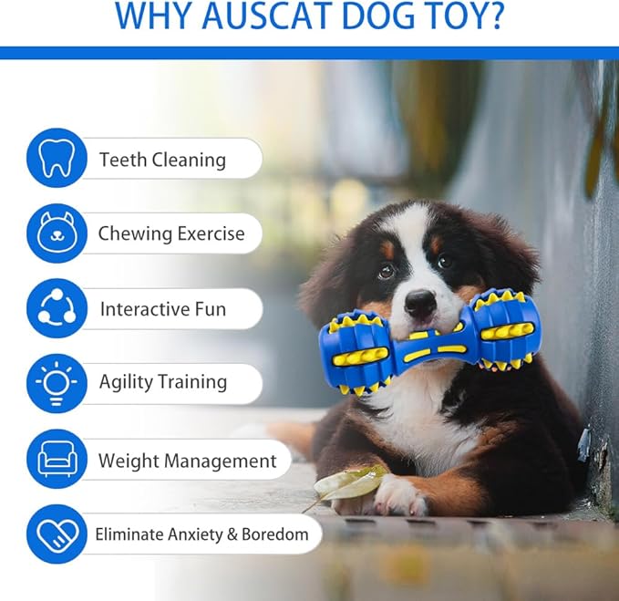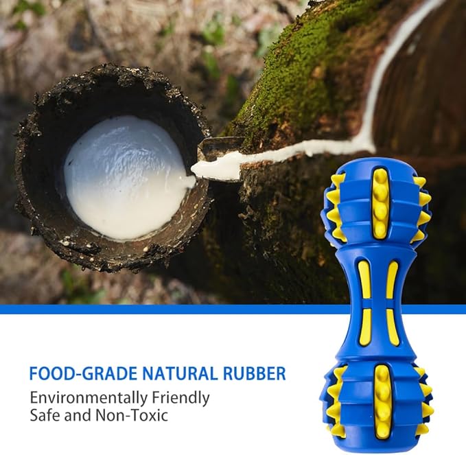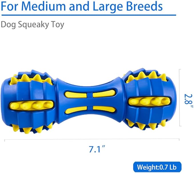 AUSCAT Dog Teething Toys, Durable Squeaky Dog Chew Toys, Natural Rubber Chew Toys for Dogs, Dumbbell Shape, Blue