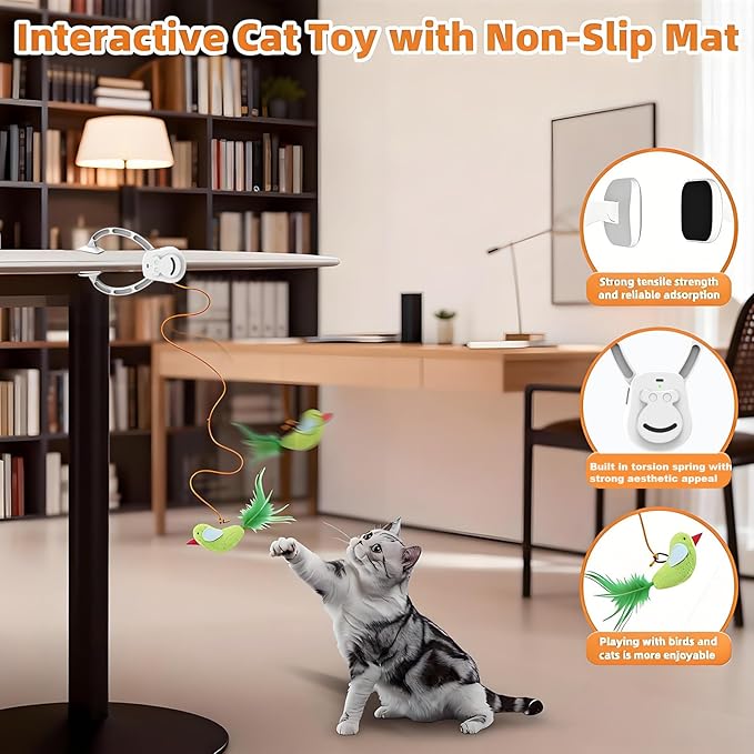 - Engaging Bird Attachment for Active Play: The included fluttering bird attachment responds to the toy's motion, promoting chasing and pouncing activities. Suitable for both kittens and adult cats, it supports playful movement and interaction.