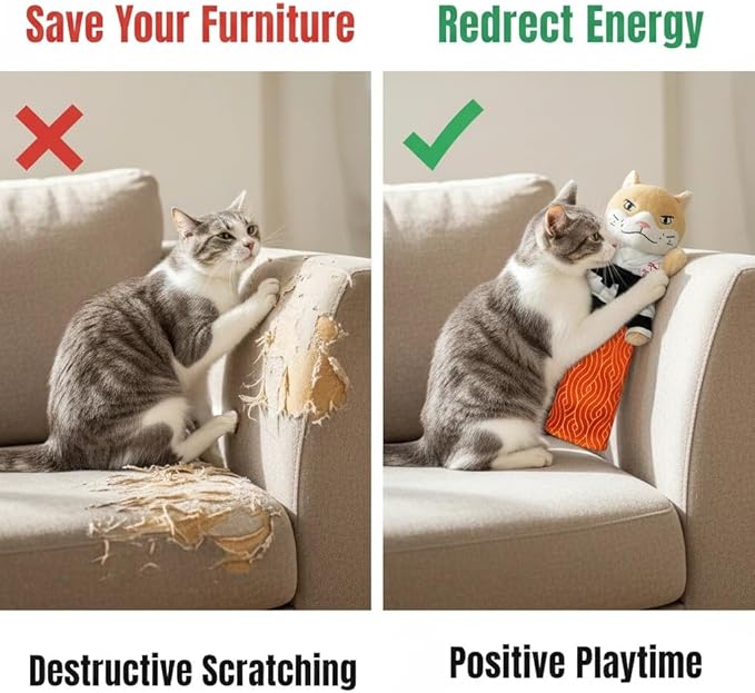 - 【Engage Instincts & Release Energy - The Ultimate Interactive Cat Wrestling Puppet】: Designed to trigger your cat’s natural hunting instincts, this cat wrestling puppet encourages pouncing, bunny-kicking, and playful biting—redirecting scratching energy away from furniture into positive, interactive exercise. Perfect for reducing boredom, managing weight, and strengthening your bond through safe and exciting cat interactive play.