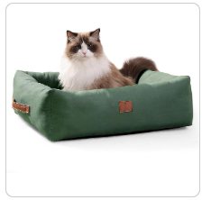 - Cozy Kitten Bed (20" Green) – Washable rectangle bed with non-slip bottom